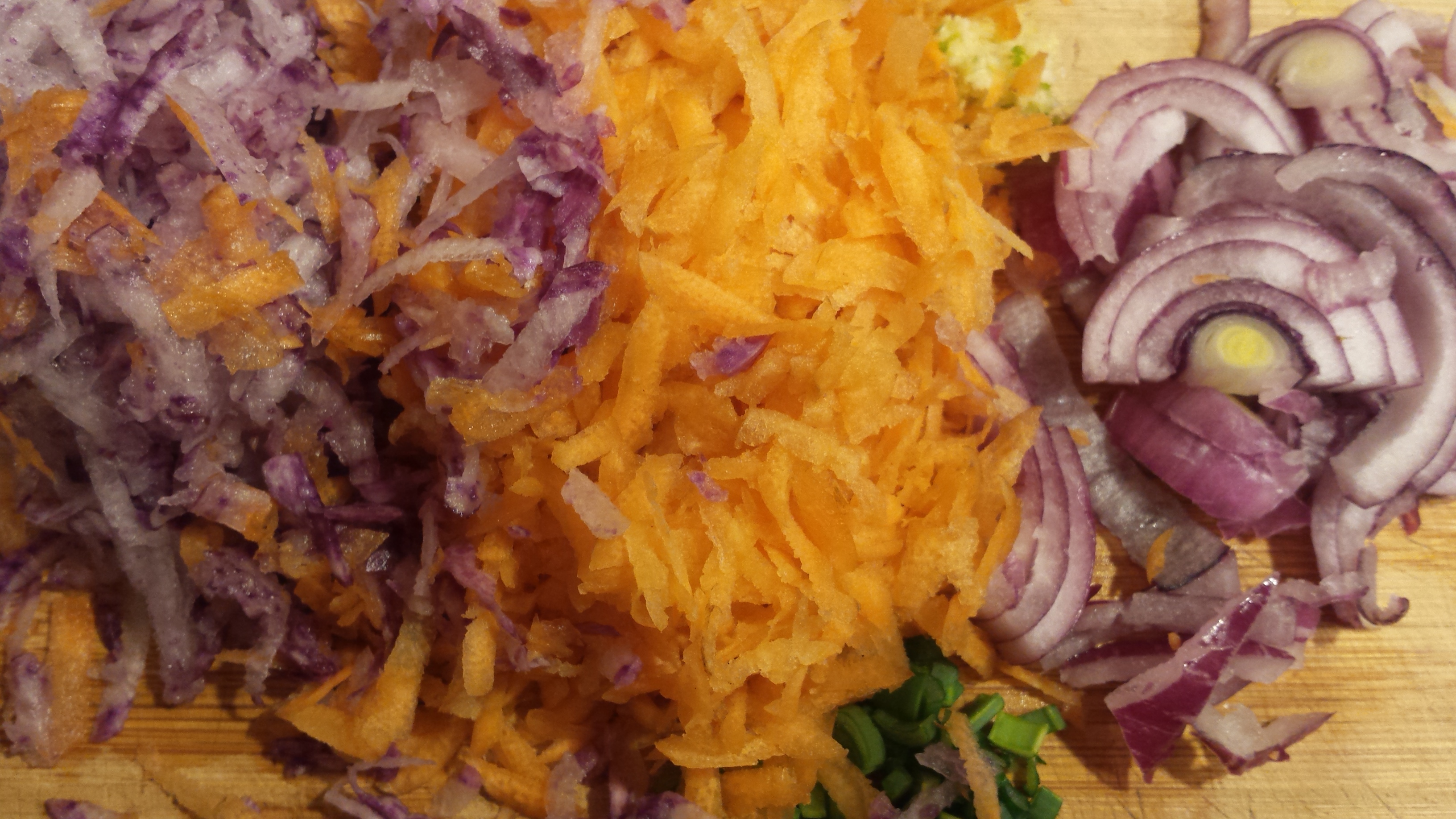 Add brown sugar, soy sauce, and garlic and stir for about a minute. Add carrots and radish. Cook for 2 more minutes. Eat by itself or on rice.