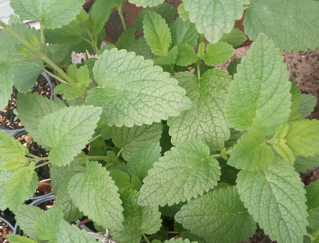 Lemon balm is a leafy herb that tastes and smells like lemons! It’s related to mint, so smell your herb to be sure about what you have.
