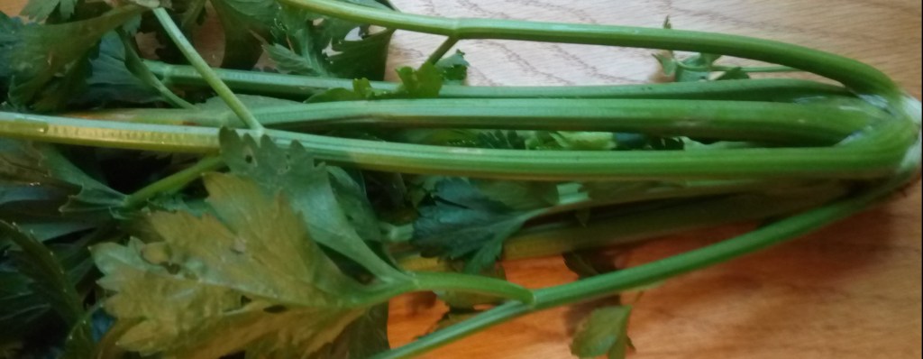 Celery is a fibrous, fresh-tasting vegetable that is very versatile and common in many recipes. The stalks (stems) and leaves are both edible, but it’s best known for the stalks.